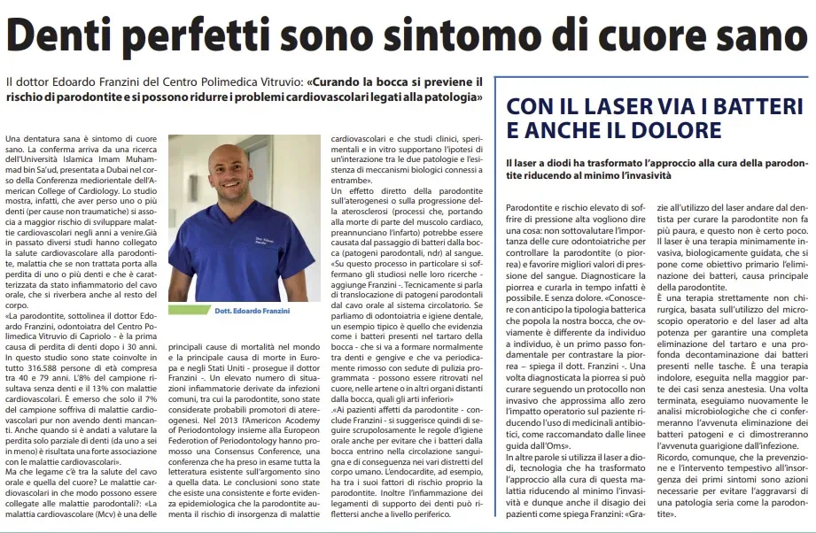Il dottor Edoardo Franzini del Centro Polimedica Vitruvio: «Curando la bocca si previene il rischio di parodontite e si possono ridurre i problemi cardiovascolari legati alla patologia»