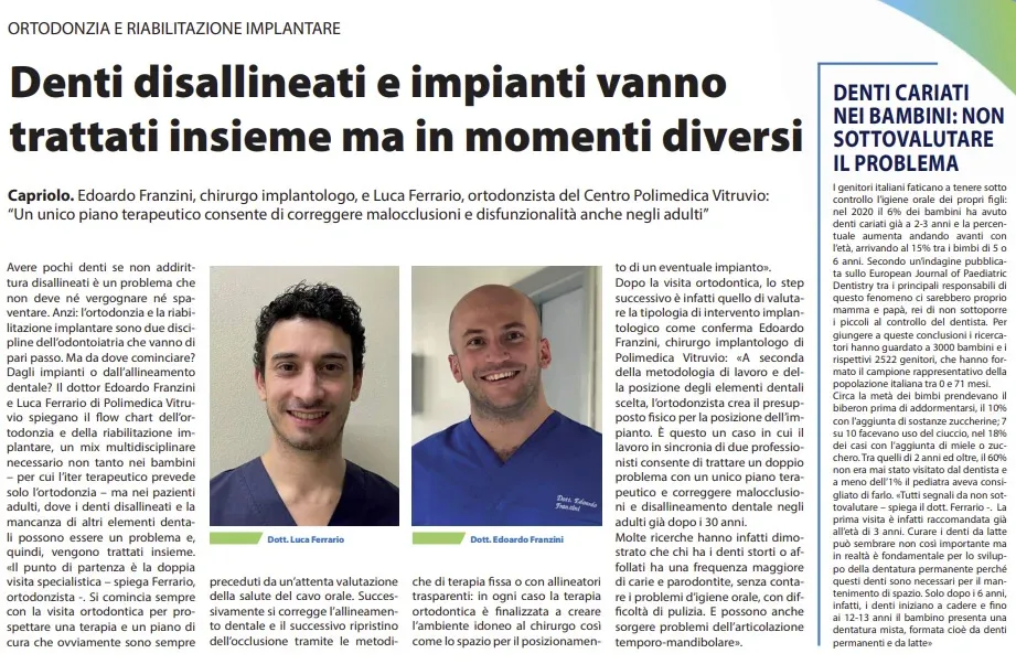Capriolo. Edoardo Franzini, chirurgo implantologo, e Luca Ferrario, ortodonzista del Centro Polimedica Vitruvio: “Un unico piano terapeutico consente di correggere malocclusioni e disfunzionalità anche negli adulti”